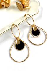 Elizabeth Multishaped Black and Golden Big Earrings