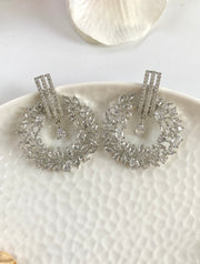 Glittery White Diamond Circle Dangler Earrings