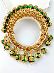 Green Drop Jodhpuri Elegant Pacheli Pearl Kada Bangle