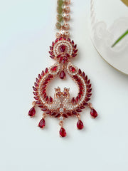 Shining Maroon Peacock Rose Gold Diamond Maang Tika
