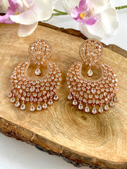 Rosy Chakra White Diamond Chandbali Earrings